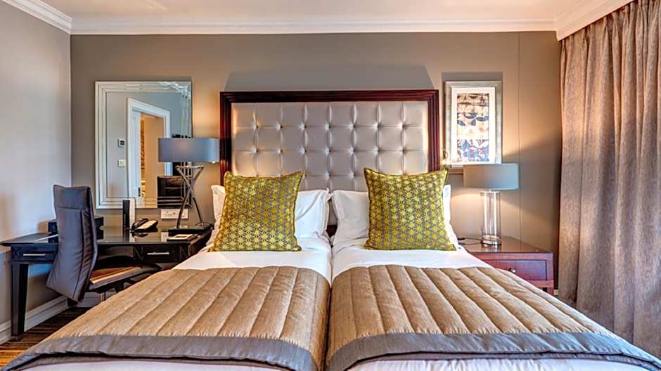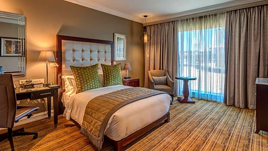 This room has an office with a dedicated fax and printer. It has a separate seating area with 3-seater sofa, 2 lounge chairs and a coffee table. There is also a separate dining area with a mini-bar, and LCD satellite TV. These suites have a dressing room and feature an African décor.